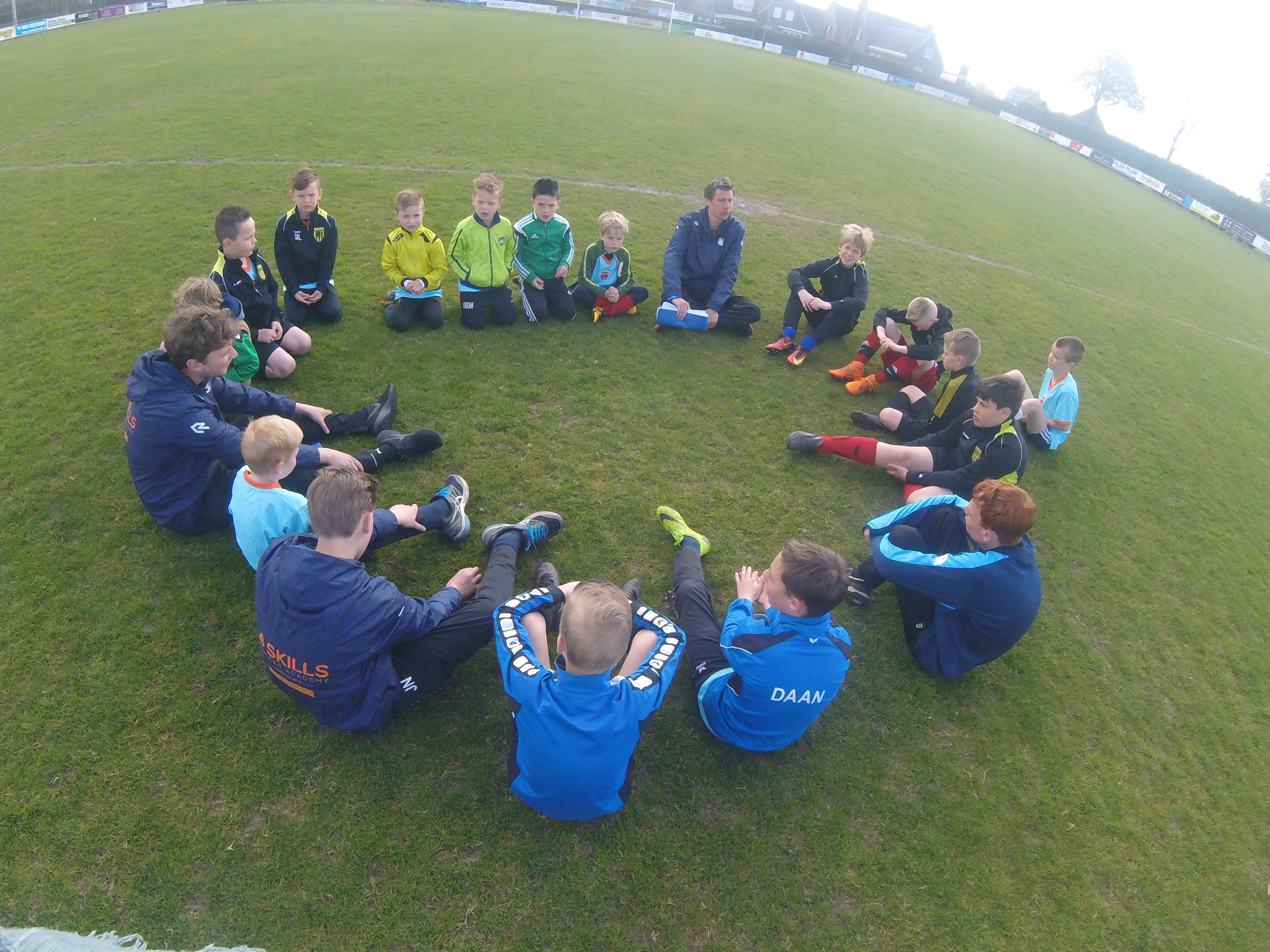 Voordat we de dag weer afsluiten met de 4v4 wedstrijden, spelen de 3 groepen van vandaag een wedstrijd tegen de 4-Skills trainers.